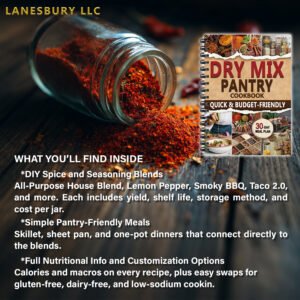“Dry Mix Pantry Cookbook” instructs you on preparing fundamental staples from the ground up, helping you save money and shop only once a month. Discover how to stock up on durable ingredients, store them properly, and make homemade substitutes that are tastier and more nutritious for your family — without requiring any special skills or tools. Within this manual, you will find: Save Money While Eating Better – Reduce your grocery expenses and avoid costly pre-packaged items with this all-encompassing guide.