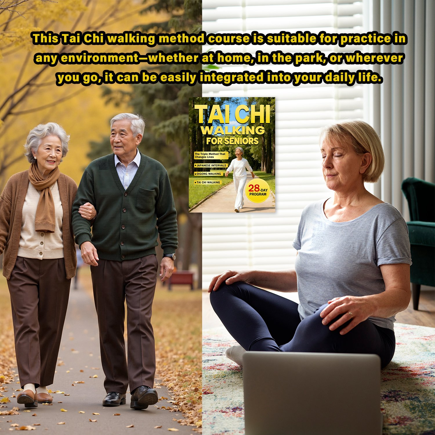 TAICHI Walking is a groundbreaking fusion of Japanese Interval Walking, Tai Chi Walking, and Qigong Flow that resets your body and mind — in just 30 minutes a day.